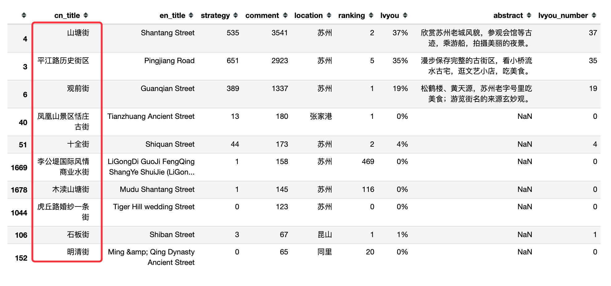 本文中共有两份数据:苏州美食和苏州景点。数据是通过爬虫方式获取的,文末有数据获取方式。