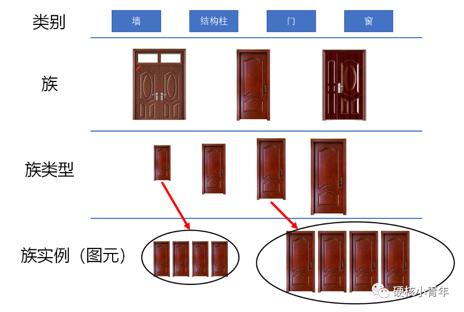 那么类别的下一级就是族,我们以门为例,假如类别是门的话,那么族就可以是双开门、单开门以及子母门等等,它是对类别的种类进行划分。