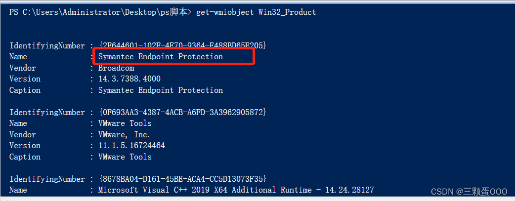 1、需要使用get-wmiobject Win32_Product获取已安装的应用程序列表,以sep卸载为例