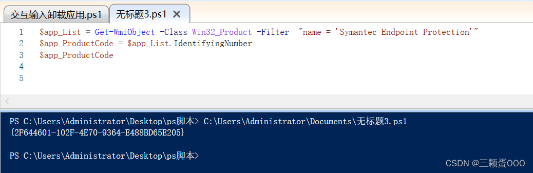 $app_ProductCode = $app_List.IdentifyingNumber #提取应用程序ProductCode值
