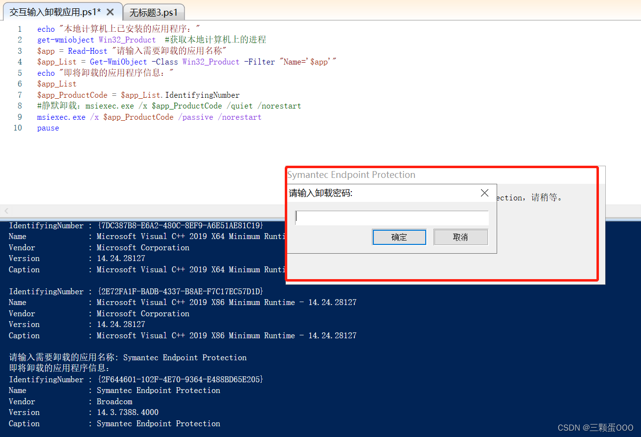 可以批量卸载的powershell脚本代码如下(无需用户干预):