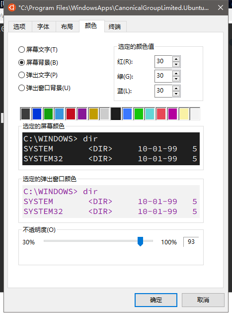 本例修改了屏幕字体(242, 242,242) 与 屏幕背景(30,30,30),透明度93%。