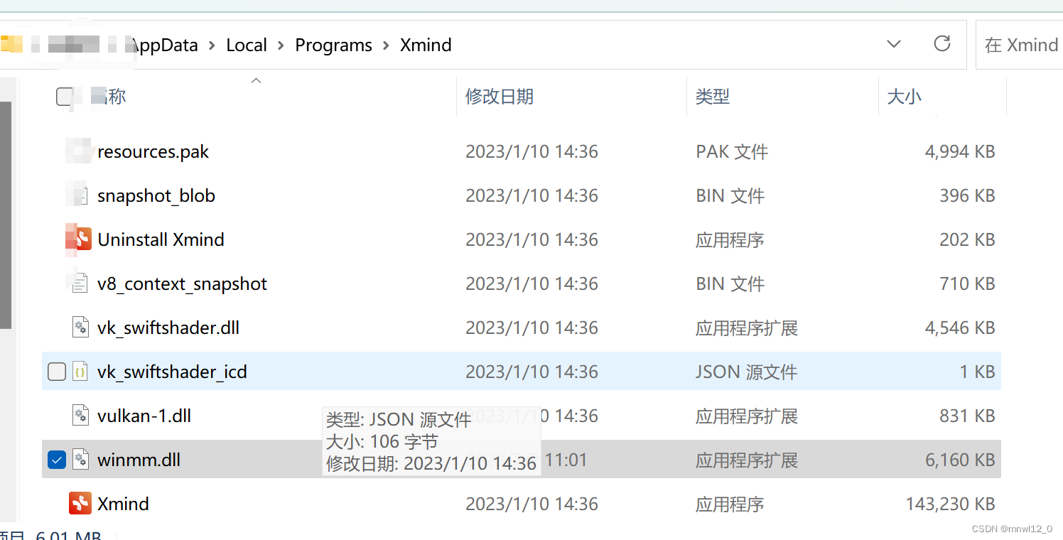 将压缩包里面的 winmm.dll 文件复制到对应的这个xmind目录下: