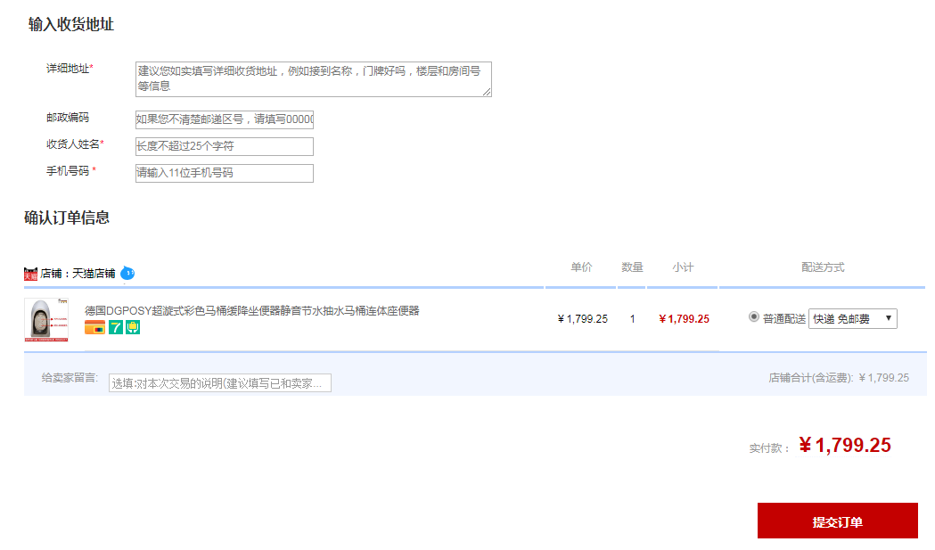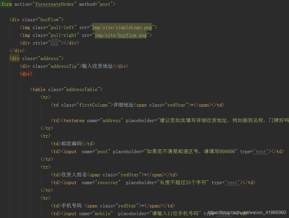 2. 通过参数Order接受地址,邮编,收货人,用户留言等信息