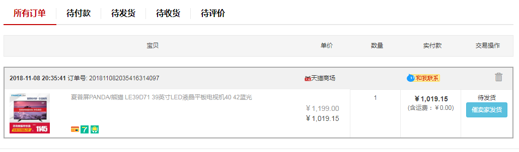 3. 前两步都是前台用户操作导致的,接下来需要到后台做发货操作,发货后,订单处于waitConfirm 待确认收货状态