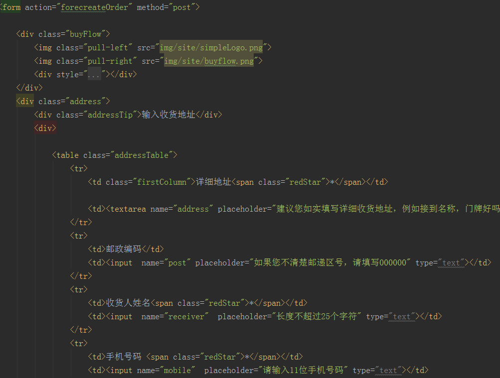 在buy.jsp中,点击提交按钮后,就把表单里面的信息提交到/forecreateOrder