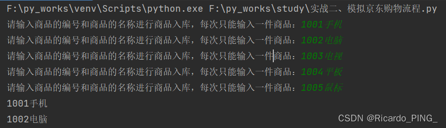 Python学习记录-实战二、模拟京东购物流程