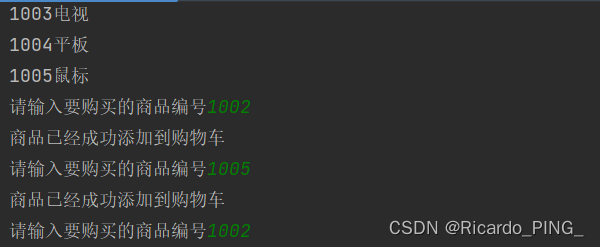 print("您购物车里已选择的商品为:")