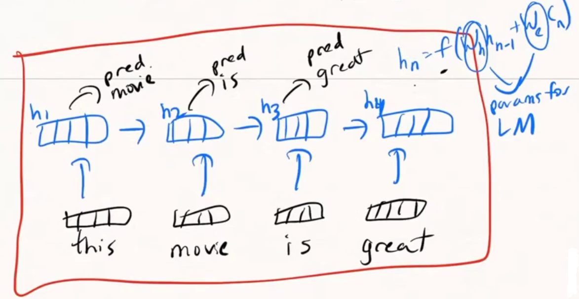 We init our sentiment model with a pretrained NLM, and then backprop the error from a different task (downstream task) into these params. This is called fine-tuning