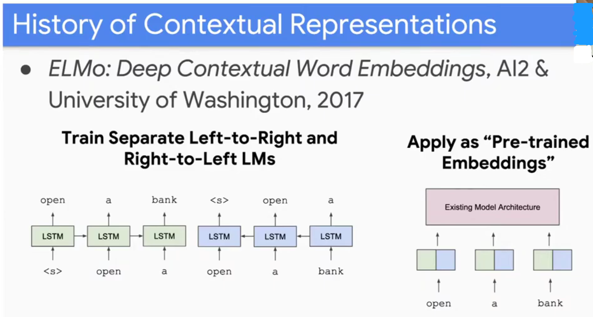 the ELMo approach of two separate LMs that are then concat together is a little hacky...