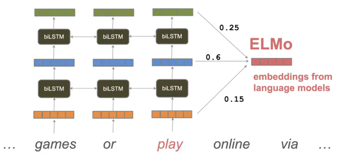3️⃣ 最后,在具体的任务中,我们使用ELMo输出的词嵌入作为下游任务的输入,也可以作为下游任务的输出层。