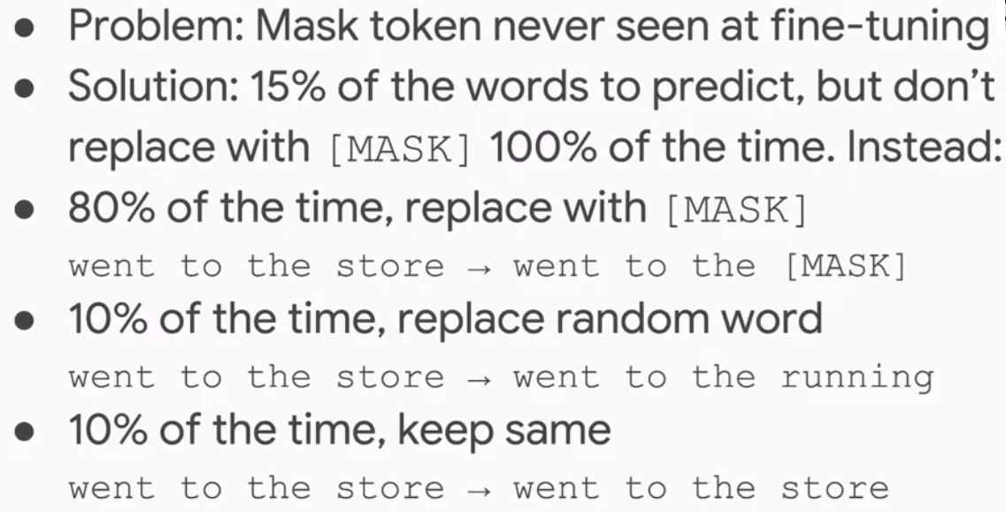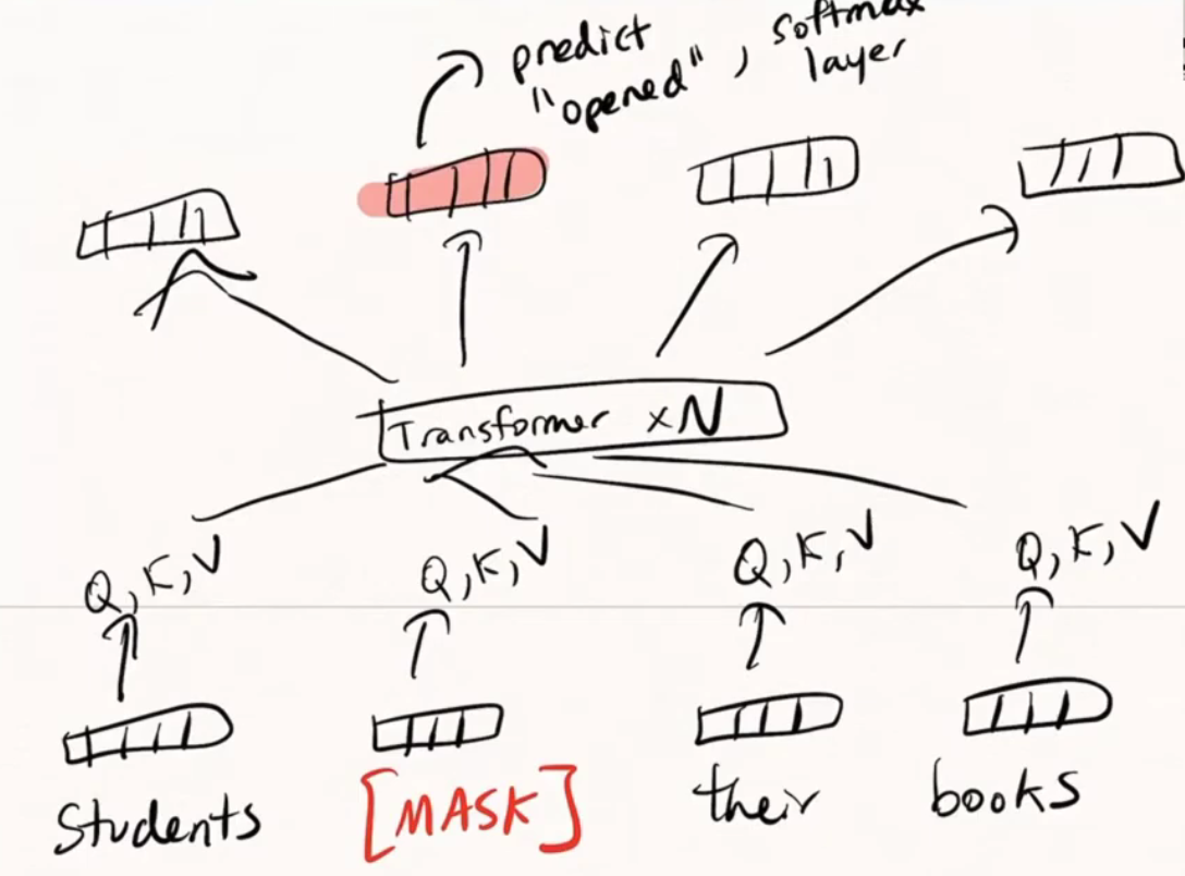 - given a full sequence of words(not just prefix) where x%(通常为15%) of the words have benn masked out