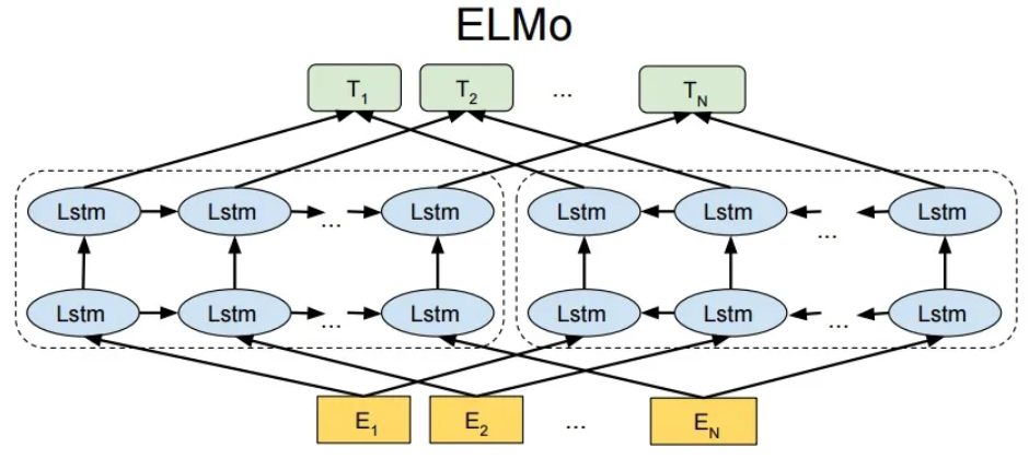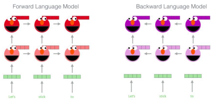 在ELMo中,他们使用的是一个双向的LSTM语言模型,由一个前向和一个后向语言模型构成,目标函数就是取这两个方向语言模型的最大似然。
