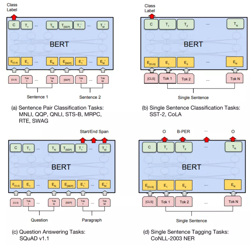对于不同的NLP任务,模型输入会有微调,对模型输出的利用也有差异。