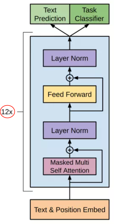 在语言模型网络上他们使用了google团队在《Attention is all your need》论文中提出的Transformer解码器作为语言模型。在具体NLP任务有监督微调时,与ELMo当成特征的做法不同,OpenAI GPT不需要再重新对任务构建新的模型结构,而是直接在transformer这个语言模型上的最后一层接上softmax作为任务输出层,然后再对这整个模型进行微调。如果使用语言模型作为辅助任务,能够提升有监督模型的泛化能力,并且能够加速收敛👉[链接]