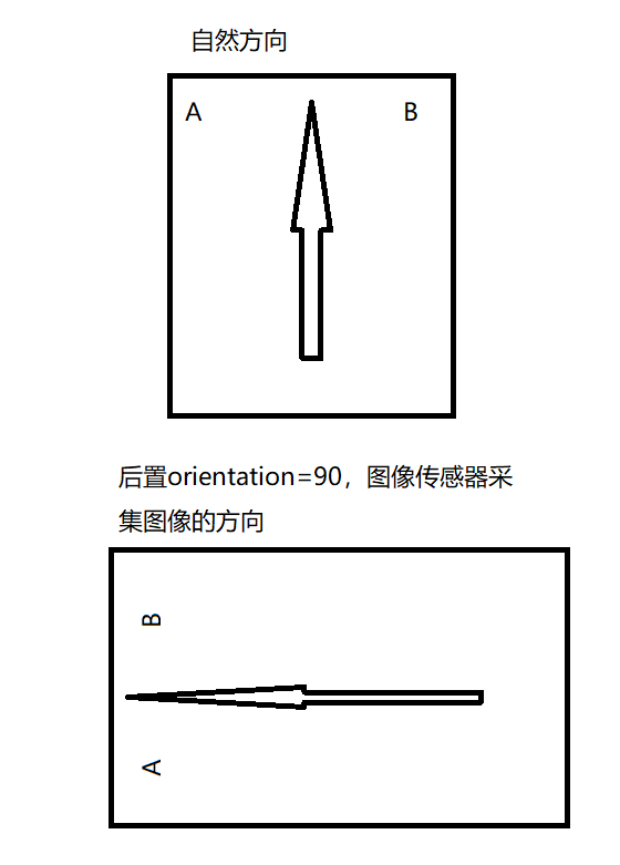 我们可以通过CameraInfo对象的Orientation属性获取图像传感器的图像采集方向,该属性是一个角度值,只能有0,90,180,270四个中的一个,这几个角度值是相对于手机的“自然方向”来说的。再直白点就是,相机所采集的图像只要按着该角度顺时针旋转就可以得到正确的预览图像数据。