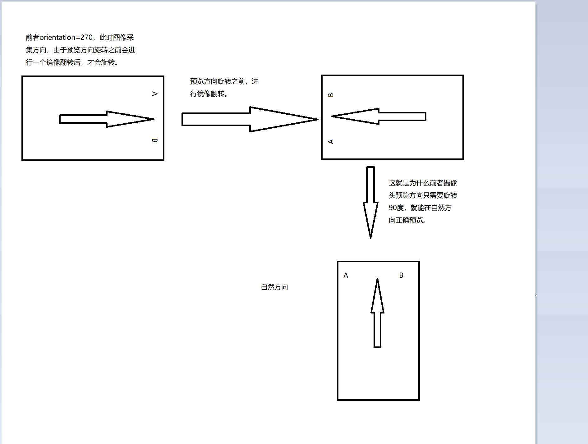 所以,对于不管是前置还是后置摄像头,对应屏幕上述的各个方向,设置预览角度就可以得到校正后的预览图像。