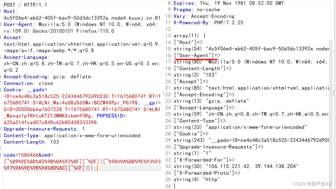 next(getallheaders()) 返回的是User-Agent的内容,所以我们通过修改User-Agent为我们的命令