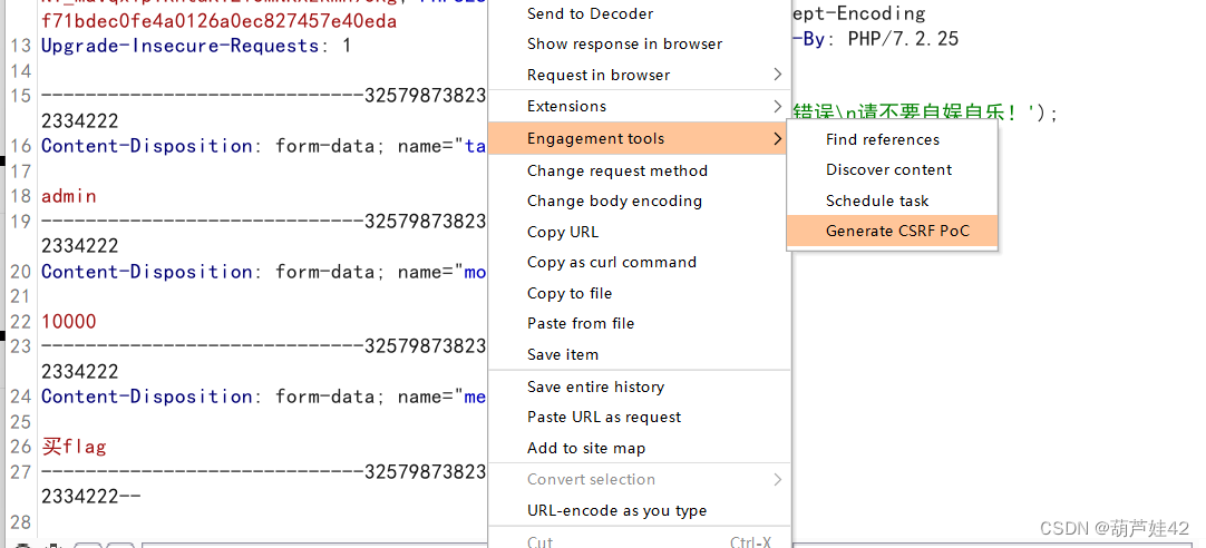 使用burp里 Engagement tools的Generate CSRF PoC 生成一个csrf