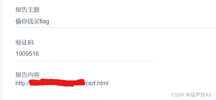 Lonelone:<回复> 投诉:我会好好查看你们提交的报告 还会点击。 因此我们构造csrf,恶意链接,写道报告内容里提交