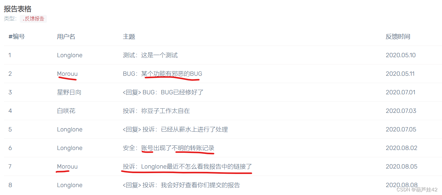 再次查看报告界面,可以看到 Morouu这个家伙 说有一处bug,Lonelone大财主出现了安全问题,不明的转账记录。后面 Morouu又投诉说Lonelone不看他的链接了。