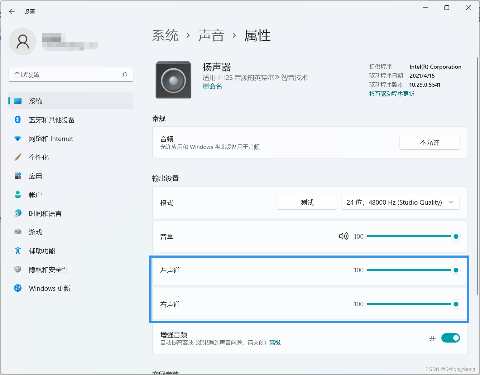 以华为原装耳机为例,偶尔会出现左右声道声音大小不一的情况。 以HUAWEI MateBook14笔记本电脑为例,进行操作。 解决方法: 1、点击管理音频设备 2、更多音量设置 3、点击扬声器 4、调节左右声道(两者调为一样的数值) OK 解决了~