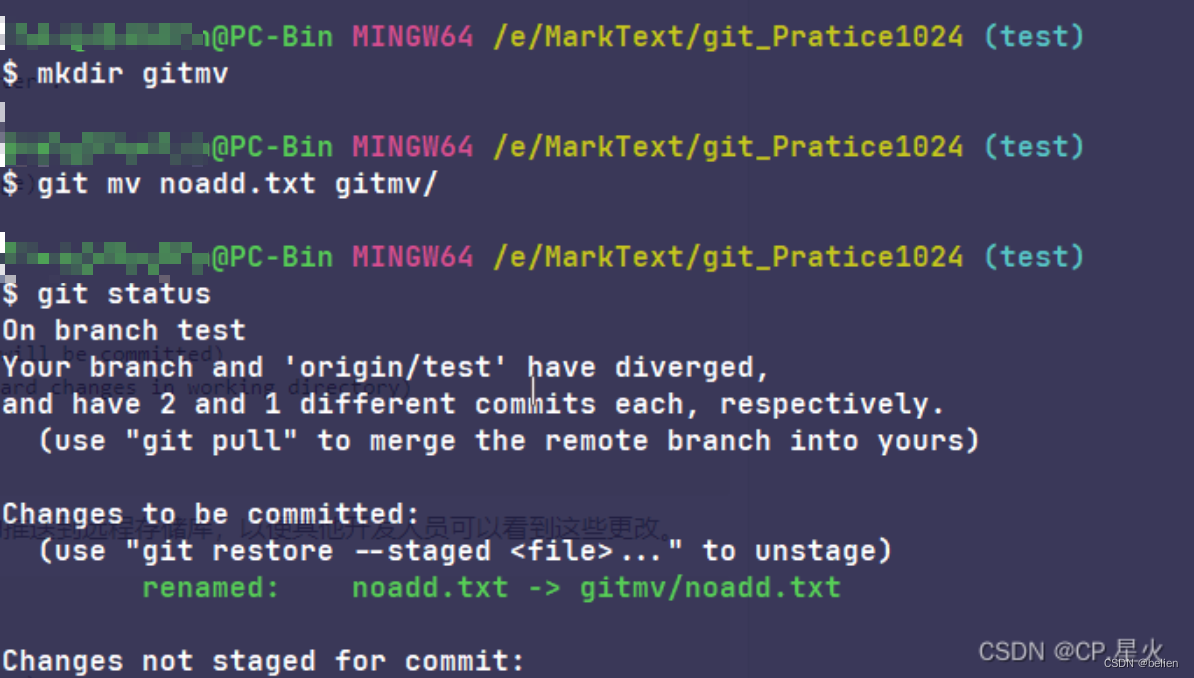 R: 表示文件已被重命名;对于提交操作,需要使用