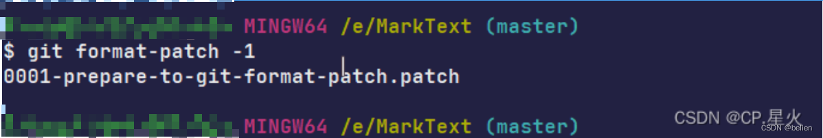 使用 git format-patch 命令创建最新提交的修补程序。 如果要为特定提交创建修补程序,请在 format-patch 命令后面指定 COMMIT_ID 。