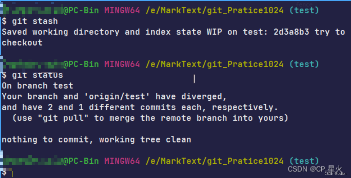 之后想重新开始新的文件编写,查找上次没有修改完的文件,只需执行 git stash pop 命令即可从堆栈中删除更改并将其放置在当前工作目录中: