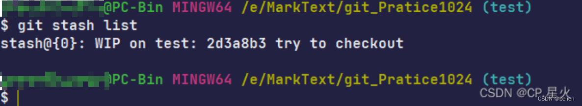 现在,可以安全地切换分支并在其他地方工作。通过使用git stash list命令来查看已存在更改的列表: