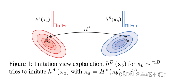 如命题2所示,最佳运输H∗:H∗#PB = PA是将PB移动到PA的最佳移动器,以最小化hB对x ~ PB和hA对H∗(x) ~ PA的预测差异。换句话说,给定x ~ PB,最佳输运H∗在x A(即H∗(x))的空间中找到最接近的对应项,以便hB可以方便地模仿hA在H∗(x)上的预测来预测x(见图1)。