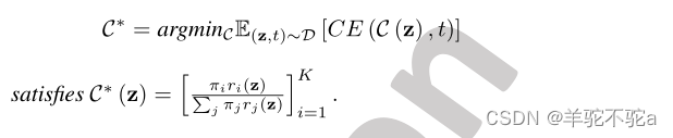 推论5。如果训练源域鉴别器C使用交叉熵损失(即CE(·,·))对联合分布D中的样本进行分类,则最优源域鉴别器C∗定义为