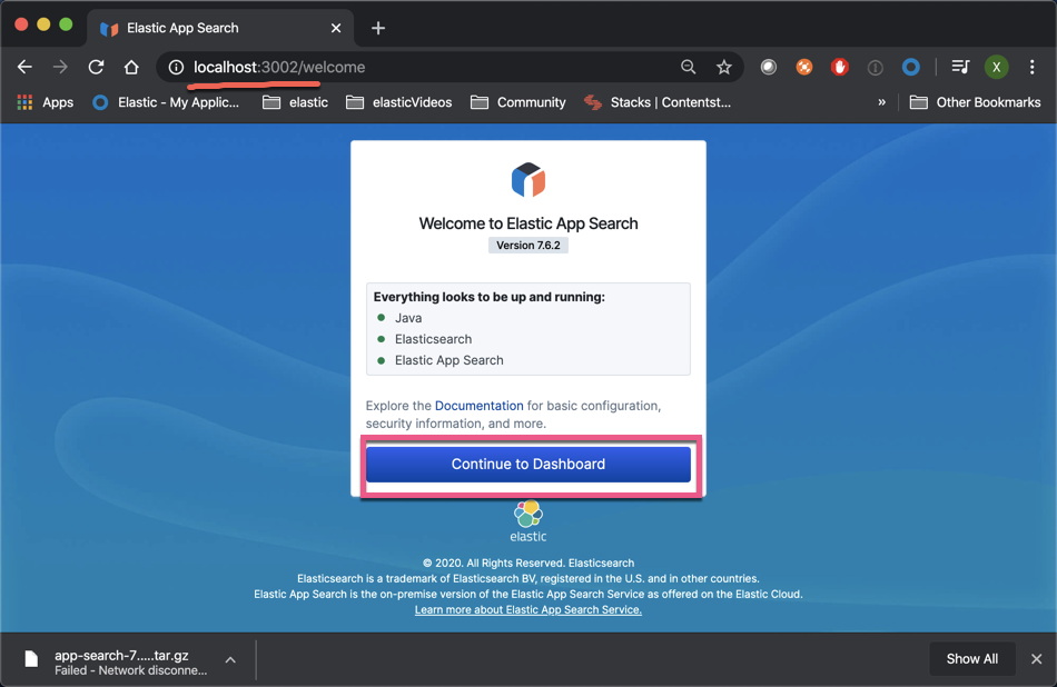 如果我们配置正确的话,这次我们的 App search 的启动将是成功的。