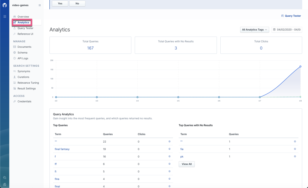 - 分析用户查询:你用户的查询会登录到 App Search。 分析它们以更好地了解用户的行为并找出引擎的弱点