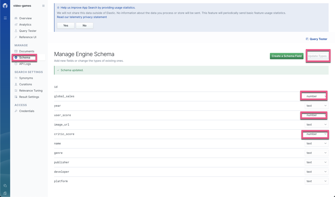 - 调整 schema,并将 user_score 和 critic_score 更改为数字字段。