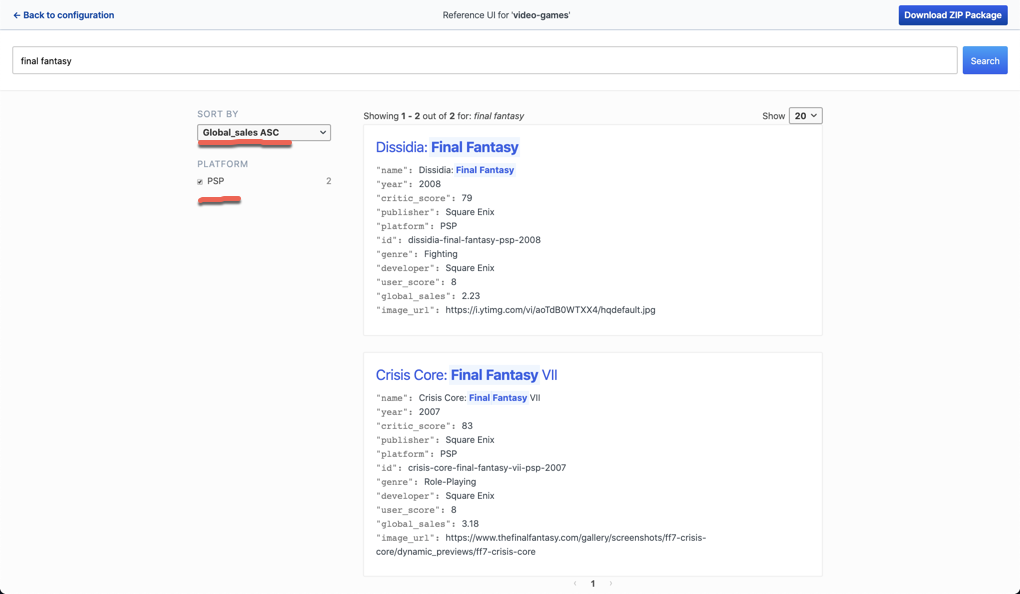 这样我们就可以看到如上所示的用户界面。我们可以尝试输入一个关键字比如 final fantasy 来进行搜索: