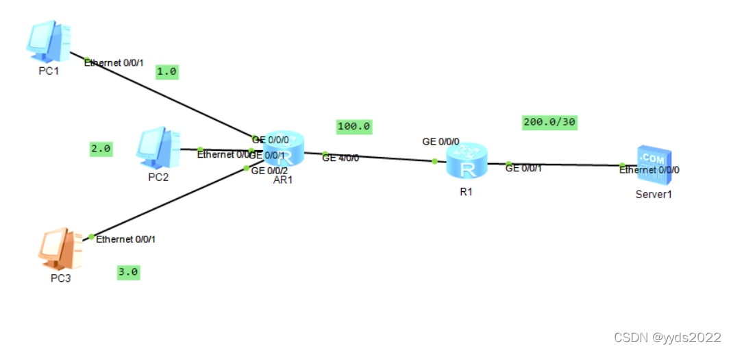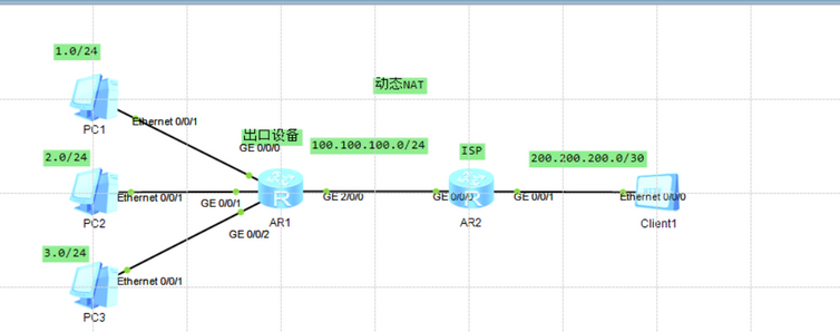 经过这样的配置192.168.1.1与100.100.100.3映射;192.168.2.1与100.100.100.4;100.100.100.5与192.168.3.1.映射,这样做很浪费nat所以一般不常用