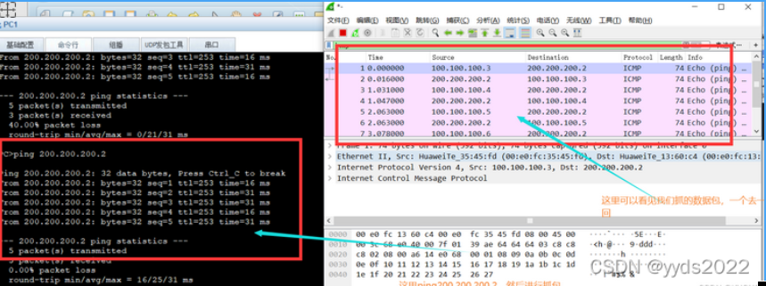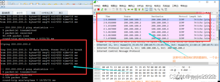 这里我们可以ping200.200.200.2 的地址,进行抓包分析一下,如图