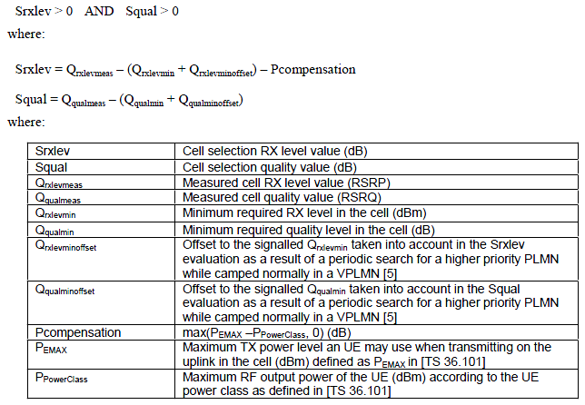 但在大多数情况下,当我们说“小区选择标准”时,它指的就是第一个标准(信号强度/质量标准)。此信号质量标准详见36.304。