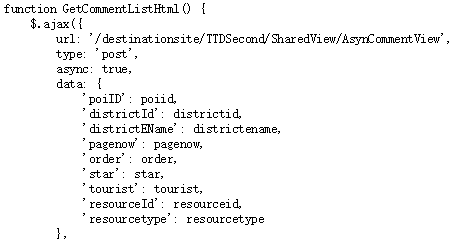 这行代码直接说明了,该网页的评论信息是通过POST服务的形式,向评论数据传输文件AsynCommentView的URL发送POST请求,然后获取返回的评论数据。