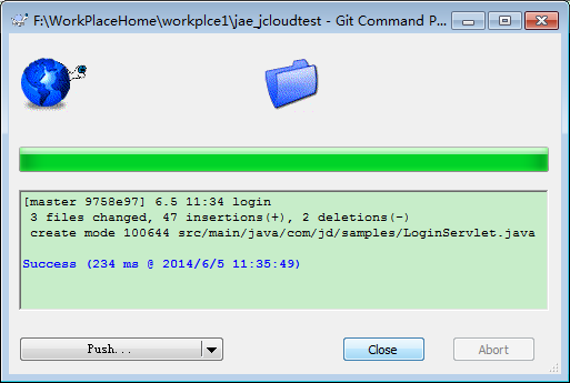 点击 OK,输入用户名和密码,复制完成后,点击 Close,工作空间文件目录就出现了 jae_jcloudtest 工程了。打开工程,如图: