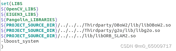 - 修改~/ORB_SLAM2/Examples/ROS/ORB_SLAM2/文件夹下的CMakeLists.txt文件,在set(LIBS xxxxx 的后面加上下列这一句代码