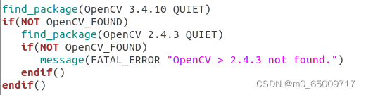 - 打开~/ORB_SLAM2/CMakeLists.txt文件,将find_package(OpenCV …)这行代码中的opencv版本号改成自己安装的opencv版本号,如下图所示