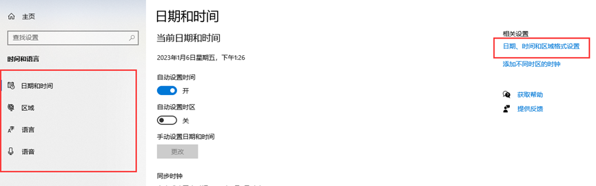 点击“其他日期,时间和区域设置”,