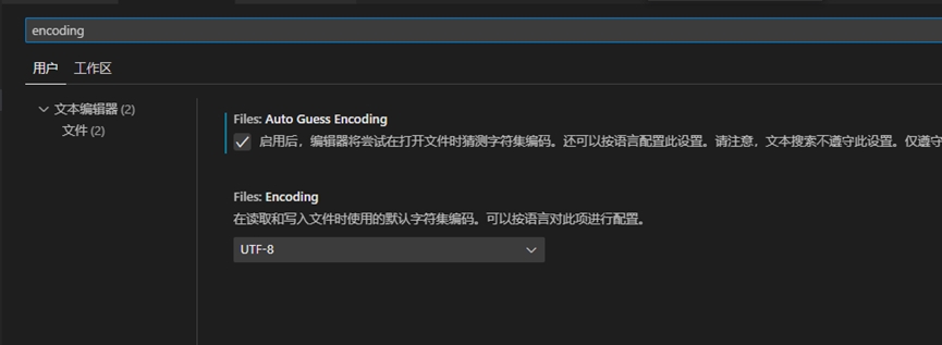 在设置中输入encoding。