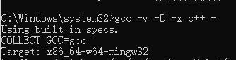 在得到的cmd终端中输入:gcc -v -E -x c++ -