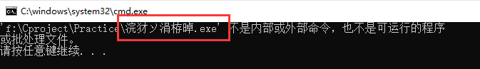 此时发现”你好世界.exe“中的”你好世界“成为了乱码,但是此时到”你好世界.exe“的存放位置中打开此程序发现正常输出。(注意到存放位置打开“你好世界,exe”文件,需在原代码文件中添加防止闪退的代码。详见解决“窗口一闪而过问题”的方案二)。