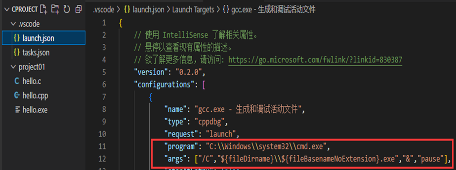 方案一:将launch.json文件中的代码段,如图所示: